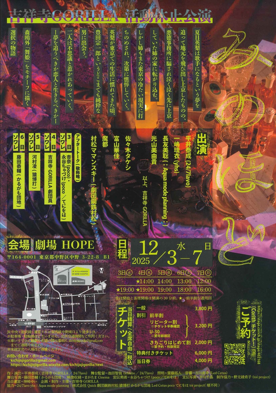 コラオブミニLIVE付きチケット(本編後) プレミアムシート 8,000円※ 前売券 7,000円 当日券 7,500円 |