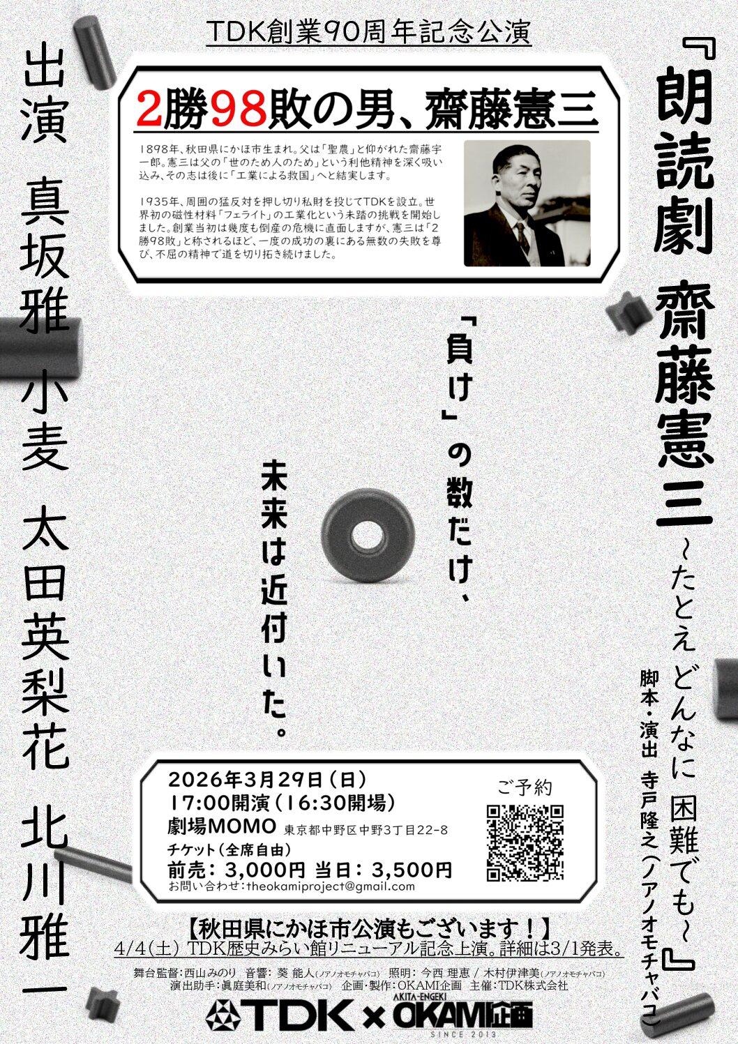 | 『朗読劇 齋藤憲三~たとえどんなに困難でも~』 |
