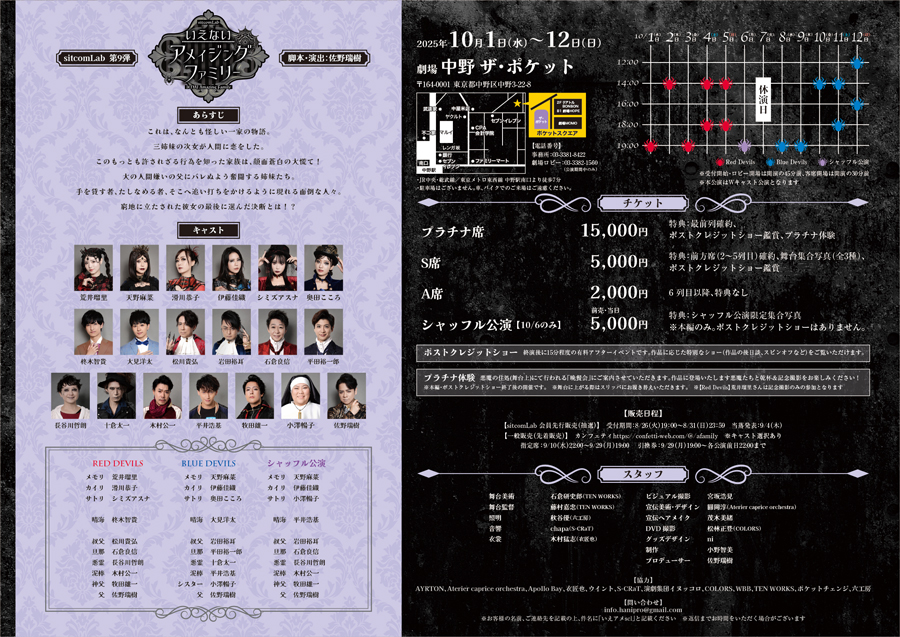 プラチナ席 15,000円 S席 5,000円 A席 2,000円 シャッフル公演【10/6のみ】 5,000円 |